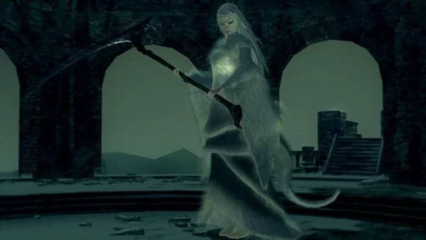 Priscilla turns invisible in addition to her blizzard and scythe attacks. Her Blizzard attacks deal bleed damage and she has wide range swings. She is fairly easy as long as you know to look for her footprints when she is invisible and keep your shield up. When she is invisible try not to spam attacks or you will get punished, instead hit, and dodge. Try to equip bleed-resistant equipment like the Bloodbite ring. Pyromancy is good here such as the Great Chaos Fireball for when she goes invisible as well.